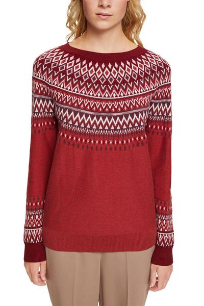 * Baumwollstrick * Jacquard-Muster * Rundhalsausschnitt * Gerippte Abschlusskanten * gerade Passform