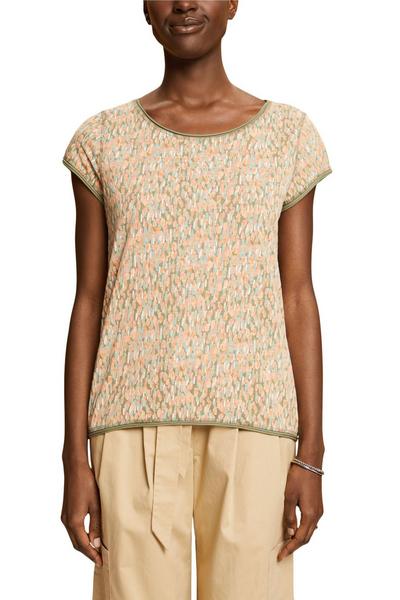 * Slub-Jersey aus 100 % Baumwolle * Weiter, runder Ausschnitt * Mehrfarbiges Allover-Muster * Gerade Passform
