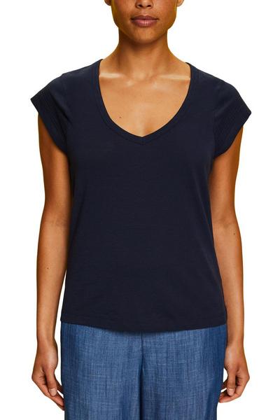 * Aus reiner Baumwolle * Slub-Struktur * V-Ausschnitt * Flügelärmel mit gesteppten Streifen * Gerade Passform