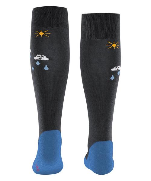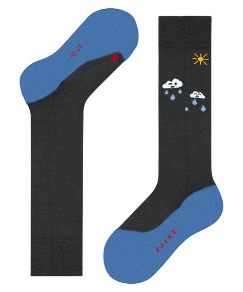 Dieser Kinder-Strumpf ist der perfekte Begleiter für kalte und nasse Tage. Dank der hautschmeichelnden Wolle-Mischung und der Kniestrumpflänge mit Umschlagbündchen werden Füße und Waden wunderbar warmgehalten. Das spezielle Sohlenmaterial sorgt für ein angenehmes Fußklima und einen hohen Feuchtigkeitstransport, damit kleine Füße auch in Gummistiefeln nicht schwitzen. Neben den witzigen Regenwolken im Schaft erscheinen beim Umschlagen des komfortablen Bündchens Sonne und Regenbogen. Die anatomische FALKE-Passform bietet den Kindern höchsten Tragekomfort.