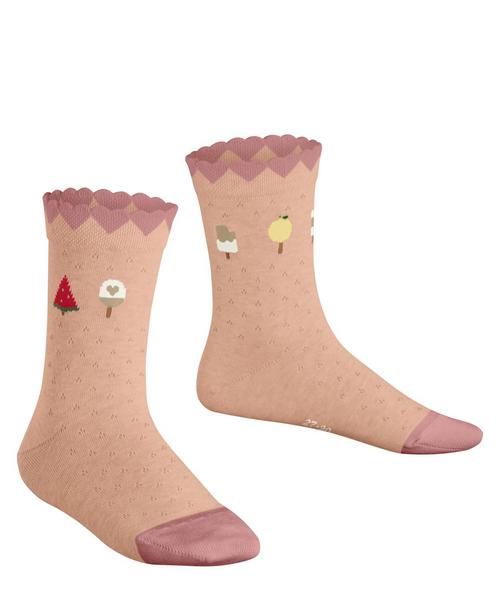 It´s time for ice cream: Bei diesem niedlichen Kinder-Strumpf aus hautschmeichelnder, nachhaltiger Baumwolle kommt richtige Freude auf den Sommer auf: Seitlich platziert sind leckere Eissorten-Motive, die um eine feine, feminine Filetstruktur im Grund des Strumpfes ergänzt werden. Der mädchenhafte Style ist dazu durch den verspielten Abschlussrand in Form von Herzen sehr besonders gearbeitet. Die perfekte FALKE-Passform sorgt für optimalen Sitz und Tragekomfort.