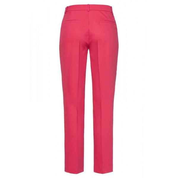 Die himbeerrote Piqué-Hose von MORE & MORE sieht mit lässigem Ringelshirt, Jeansjacke und Sneakers genauso gut aus wie mit eleganter Satinbluse, passendem Blazer und Heels.