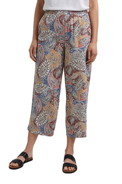 * Fließender Webstoff aus reiner, trageangenehmer Viskose * Breiter, eingefasster Gummibund * Paisley-Print allover * Seitliche Eingriffstaschen * Lockeres, gerades Bein * Verkürzte Länge
