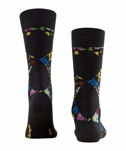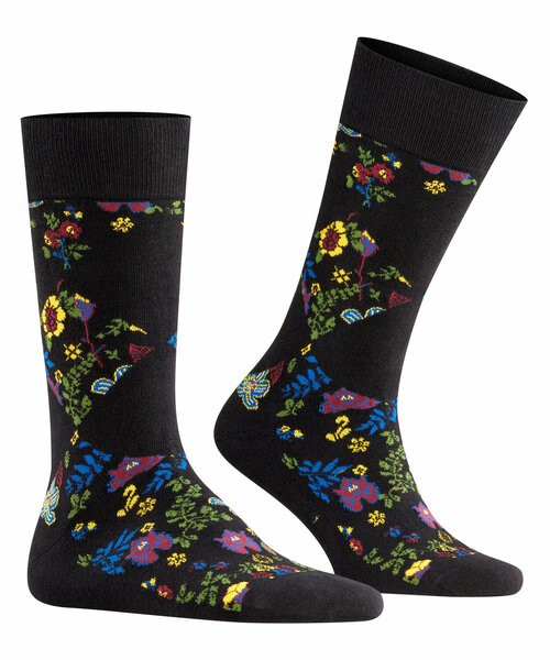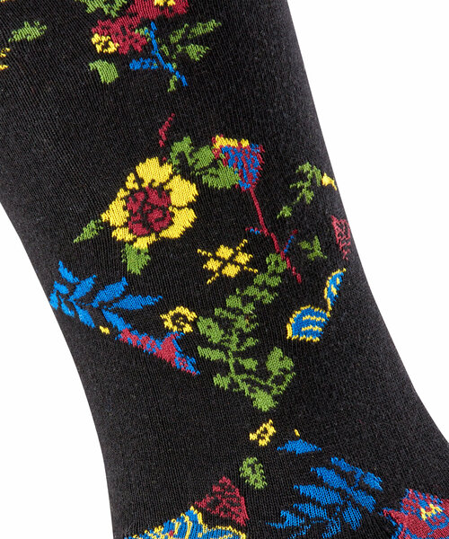 An dieser Socke kommt kein Modefan vorbei. Der besondere Look entsteht durch die Mischung aus floralem Allovermuster und Rauten am Schaft, die in sich gemustert den Blumendruck der Strümpfe aufgreifen.