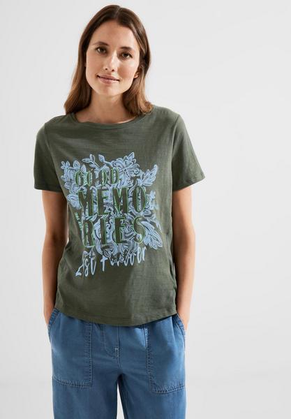 Good memories! Ein neues Lieblingsteil für den Sommer ist dieses Damen T-Shirt von CECIL. Ein Allrounder, der mit coolem Wording Fotoprint überzeugt. Details wie ein U-Boot Ausschnitt sorgen für lässige Akzente. In Flammgarn wirkt die Baumwolle besonders trendstark.