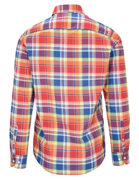 100% Bio-Baumwolle kariertes Design Button-Down-Kragen abgerundeter Saum weitenverstellbare Einknopfmanschette mit Kontraststoff Passform: Modern Fit