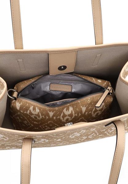 Eine Handtasche zeigt die Persönlichkeit einer Frau. Ob geordnet oder etwas chaotisch - sie wird einfach heißgeliebt! Mit Helen - dem schicken Shopper Bast-Optik mit Logo-Patch - ist die neue und treue Begleitung im Alltag immer dabei. Ob für Office, Schule oder in der freien Zeit - mit dem Shopper Helen lässt sich einfach jedes Abenteuer bestreiten. Das Modell besteht aus Feinsynthetik und lässt sich mit einem Magnetdruckknopf verschließen. Mehrfarbiges Design und Bast-Optik sind fein gearbeitet und verleihen dem Shopper einen edlen Look. Ein besonderer Look in tollen Farben. Mit den tollen Accessoires von EMILY & NOAH gewinnt einfach jede Persönlichkeit an Strahlkraft, denn die Produkte passen zu Frauen, die wissen, was sie wollen. Das Modell Helen ist von der Haptik eher fest, sodass Dinge, die nicht geknickt werden sollen, sicher transportiert werden. Für das gewisse Extra sorgt die Applikation mit dem Logo-Patch, die direkt ins Auge fällt. Im hübschen Shopper ist Platz für alles - sogar für ein kleines Geschenk für die Gastgeber der aufregenden Party oder ein paar Pralinen für die Oma.