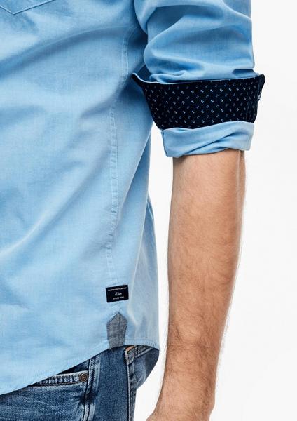 fein gemusterte Webstruktur, sportiver Button Down-Kragen , eine aufgesetzte Brusttasche mit Knopf, Manschette mit Knopf und Kontrast-Beleg innen, Slim Fit; Rückenlänge bei Größe M ca. 73 cm, softe Webware aus reiner Baumwolle
