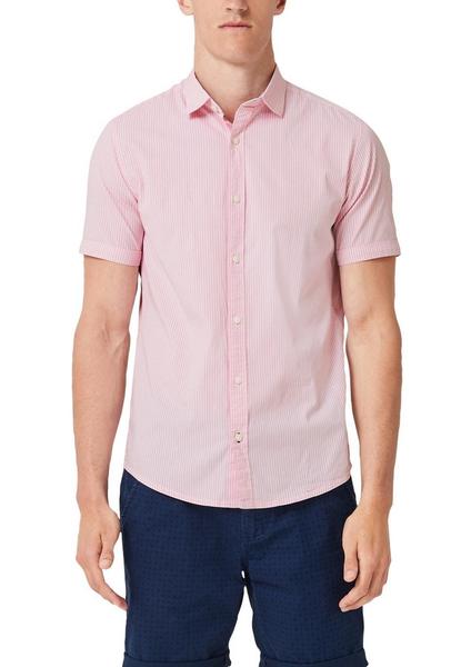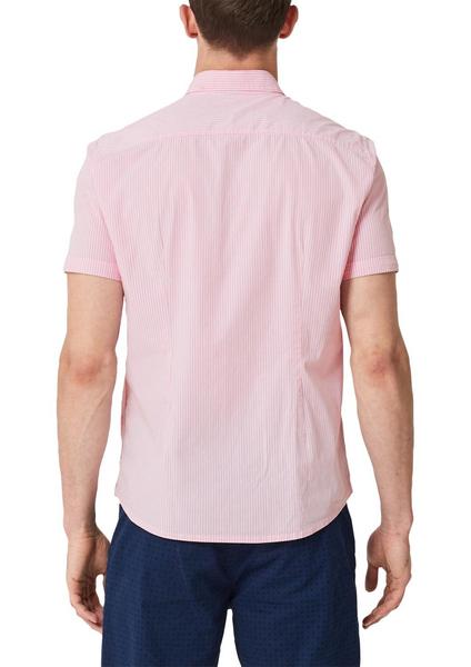 Stretchhemd mit Streifenmuster, modischer Haikragen mit Musterbeleg an der Innenseite, kurze Ärmel ebenfalls mit Belegstoff an der Innenseite, schmale Passform Slim Fit mit leichter Taillierung; Rückenlänge bei Größe M ca. 76 cm, hochwertige Webware aus Baumwolle mit Stretchkomfort