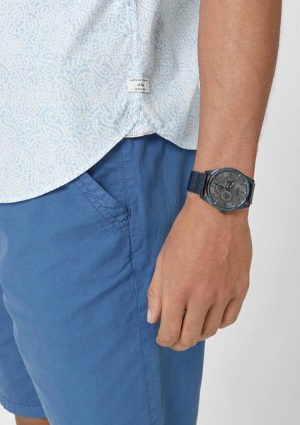 dezenter Allover-Print, modischer Haikragen, kurze Ärmel, tonige Beinecken, abgerundeter Saumabschluss, schmale Passform Slim Fit mit leichter Taillierung und abgerundetem Saumabschluss; Rückenlänge bei Größe M ca. 76 cm, elastische Webware aus Baumwollstretch
