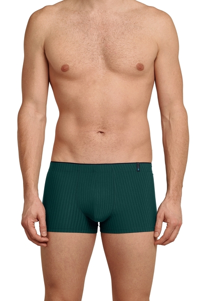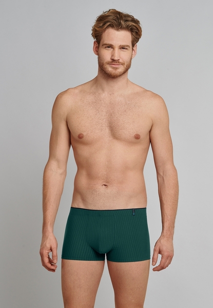 Innovatives Material und eine optimale Passform prägen diese dunkelgrün gestreiften Herrenshorts aus der SCHIESSER-Serie "Long Life Soft". Die einzigartige ReaLasting-Cotton-Verarbeitung verspricht dabei eine gleichbleibend hohe Qualität, selbst nach vielen Wäschen, und gewährt dank des ausgeglichenen Elastan-Anteils Formstabilität sowie Passgenauigkeit. Ein pilling-armes Basic für Herren, die Unterwäsche in Bestform schätzen!