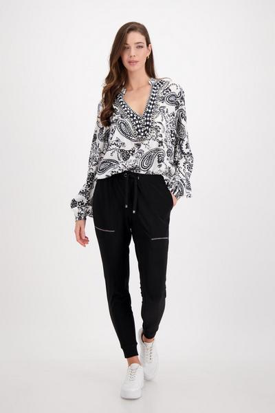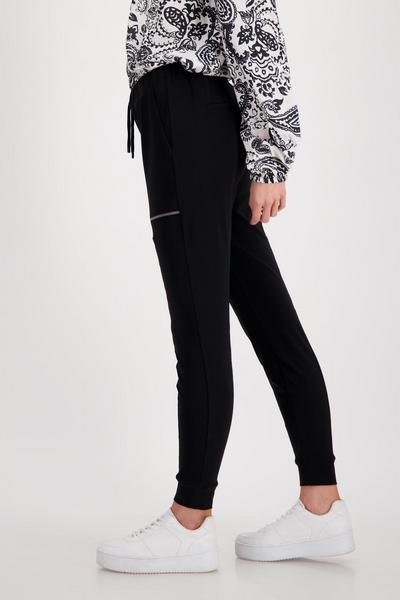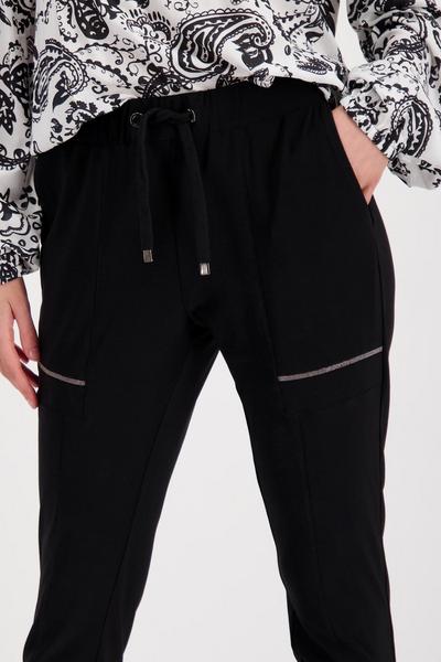 Sie werden diese raffinierte, leichte Damen Hose mit Stretch von monari lieben. Die Nähte, die Vorderseite geschmückt mit Kettendetails und der elastische Bund mit Tunnelzug, Ringösen und Bindeband sind besondere Highlights. Der Fit: Jogpants mit normaler Leibhöhe, seitliche Eingrifftaschen und Fake Leistentaschen auf dem Gesäß. Ob elegant oder sportiv, hierzu können Sie mühelos jedes Oberteil kombinieren, um Ihren persönlichen Look zu gestalten.