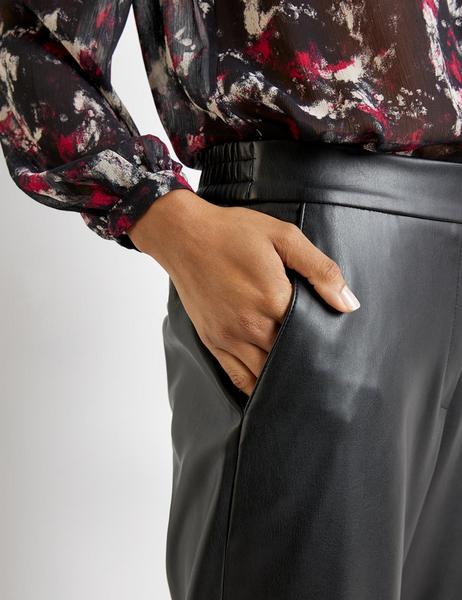 Schlupfform. Komplettiert dein Office- oder Alltags-Outfit und darf in keiner Garderobe fehlen: 3/4 Hose mit Leder-Optik ist ein echtes It-Piece. Das beschichtete Material in Lederoptik sorgt für ein tolles Tragefeeling. Schubtaschen ergänzen das Design.