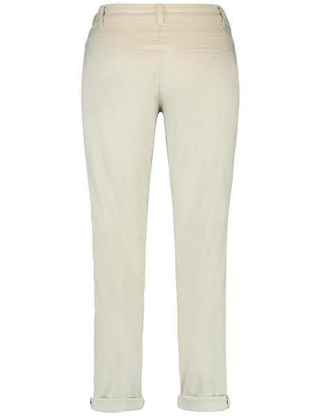 Bund mit Gürtelschlaufen und Bindeband. Angesetzte Sattelpasse. Mit einer gut sitzenden Chino haben Sie jederzeit eine passende Grundlage für verschiedene Looks und Anlässe: Mit unserem Modell KES꞉SY CHINO treffen Sie dabei immer den richtigen Ton. Ein softer Baumwoll-Mix mit Stretchkomfort passt sich Ihrer Figur an und bringt ein angenehmes Feeling mit sich. Der gekrempelte Saum und ein Bindeband runden den Style ab. Möchten Sie ins Büro. Kein Problem! Kombinieren Sie eine Bluse und Pumps, fertig ist der casual Business Look!
