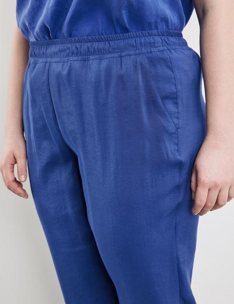 Verdeckter Gummibund. Lässige Schlupfform. Eine elegante Hose mit Trendfaktor! Die lässige Schlupfform mit bequemem Gummibund und die leichte Qualität mit feinem Schimmer machen sie zum echten Sommerliebling. Tipp: Gleich den passende Blusenblazer dazu bestellen!