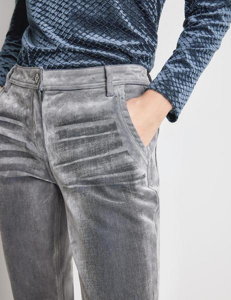 Lässiger Boyfriend-Style, Baumwoll-Denim mit samtiger Beflockung
