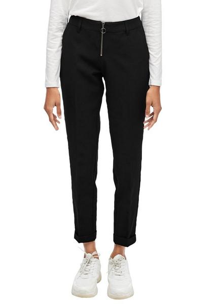 Bund mit Gürtelschlaufen, Zipper und Gegenknopf, zwei seitliche Eingrifftaschen, zwei Fake-Leistentaschen, Bügelfalten auf beiden Beinseiten, Beinabschluss mit fixiertem Umschlag, Loose Fit mit schmaler werdendem Beinverlauf, feine, elastische Web-Qualität ,