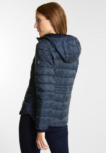 Die in trendstarken Farben und Mustern kommende Jacke fällt durch ihr toniges Steppmuster sofort auf. Die mit einem Tunnelzug verstellbare Kapuze gibt der Jacke einen sportlichen Kick. Der durchgehende Zipper auf der Front und zwei seitlichen Zippereinschubtaschen runden das Trendteil gekonnt ab. Mit ihrem knapp hüftlangen Schnitt bekommt die Jacke eine feminine Note und verfügt, auch durch das leichte Material mit weicher Wattierung, über einen hohen Tragekomfort.