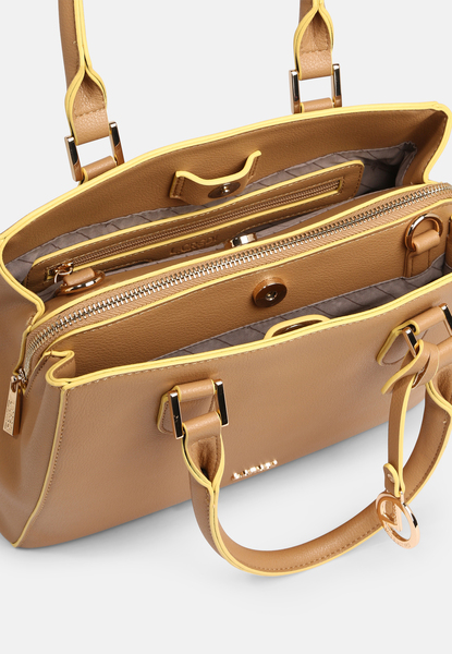 Mit ihrer zeitlos schlichten Eleganz passt die Henkeltasche IDINA zu jeder Gelegenheit. Dazu ist sie dank ihrer Organizer-Einteilung in drei nebeneinanderliegende Hauptfächer äußerst praktisch. Im Inneren bieten mehrere Fächer und Stifthalter Gelegenheit zur Ordnung. Außen befindet sich ein weiteres Reißverschlussfach für Schlüssel und Co. Ein abnehmbarer Schultergurt erlaubt Vielseitigkeit beim Tragen. Ein glänzendes Metall-Emblem und ein Logo-Anhänger runden IDINAS Look stilvoll ab.