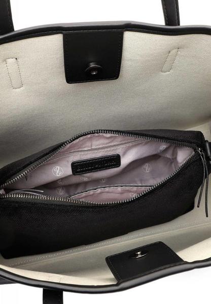 Eine Handtasche zeigt die wahre Persönlichkeit einer Frau. Ob aufgeräumt oder leicht chaotisch - Frauen lieben sie einfach! Inga ist der wunderschöne Shopper in mehrfarbigem Design sowie mit längenverstellbarem, abnehmbarem Umhängeriemen, der wahre Persönlichkeit ausstrahlt. Mit Inga lässt sich ganz einfach ein lässiges Statement setzen, das auch im Alltag gut ankommt. Ein Shopper, auf den man zählen kann. Aus eins mach zwei - Shopper und Umhängetasche in einem! Dank der herausnehmbaren Innentasche und dem beiliegenden Schultergurt ist mit der "Bag in Bag" im Handumdrehen eine zusätzliche Handtasche gezaubert! Ein Taschenwunder, das im Alltag Flexibilität verspricht. Die Produkte des beliebten Labels EMILY & NOAH stehen für tierfreundliche Styles sowie Designs und setzt auf gänzlich vegane Inhaltsstoffe. Das beweist auch das durch die PETA vergebene Logo „PETA-Approved Vegan“, dass für beste Standards bei der Herstellung ohne tierische Inhaltsstoffe steht. Das Modell besteht aus Feinsynthetik und lässt sich mit einem Magnetdruckknopf verschließen. Mit seiner Mix-Optik und dem mehrfarbigen Design ist der hochwertige Shopper ein echter Hingucker. Eine vielfältige Auswahl wunderschöner Taschen und Accessoires - EMILY & NOAH Mit den tollen Accessoires von EMILY & NOAH gewinnt einfach jede Persönlichkeit an Strahlkraft, denn die Produkte passen zu Frauen, die wissen, was sie wollen. Der Shopper hat ein Hauptfach. Für alle, die es gerne weich mögen - Inga besteht aus einem angenehm anschmiegsamen Material. Für das gewisse Extra sorgt die Applikation mit dem Logo-Patch, die einen zusätzlichen Akzent setzt. Der neue Lieblingsbegleiter wird dank längenverstellbarem, abnehmbarem Umhängeriemen und zwei Tragegriffen einfach als Schultertasche getragen. Der Artikel hat eine Abmessung von 39.5 x 30 x 16.5 cm (B/H/T).
