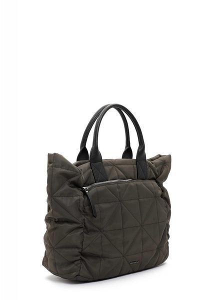 Eine Handtasche zeigt die wahre Persönlichkeit einer Frau. Ob geordnet oder leicht chaotisch - sie wird einfach heißgeliebt! Mit Irmgard - dem schicken Shopper in Camouflage sowie mit längenverstellbarem, abnehmbarem Umhängeriemen - ist die liebste neue Begleitung im Alltag immer dabei. Ein unverzichtbares Accessoire für jede Lebenslage - der Shopper Irmgard. Es ist so einfach, für alle Eventualitäten gerüstet zu sein. Die Produkte des beliebten Labels EMILY & NOAH stehen für tierfreundliche Styles sowie Designs und setzt auf gänzlich pflanzliche Inhaltsstoffe. Das beweist auch das durch die PETA vergebene Logo „PETA-Approved Vegan“, dass für höchste Standards bei der Produktion ohne tierische Inhaltsstoffe steht. Das Modell besteht aus Feinsynthetik und lässt sich mit einem Reißverschluss verschließen. Ein optisches Highlight ist der Shopper mit Nylon-Optik und der Camouflage. Attraktiver Look in aufregenden Farben Mit dem Accessoire von EMILY & NOAH wird ein individueller Stil kreiert. Kombiniert mit einem schicken Hosenanzug, einem Kleid oder einer angesagten Bluse zeigen die Produkte des Labels wahre Persönlichkeit. Der Shopper hat ein Hauptfach. Für alle, die eine weiche Haptik lieben - Irmgard besteht aus einem angenehm anschmiegsamen Material. Einen verspielten Akzent setzt das dekorative Emblem. Mit einem praktischen, längenverstellbaren und abnehmbaren Umhängeriemen und den zwei Tragegriffen wird das neue Lieblingsstück lässig als Schultertasche getragen.