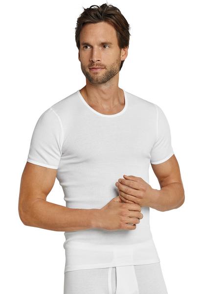 Ein wahrer Wäsche-Klassiker: Dieses weiße Herren-Kurzarmshirt aus der SCHIESSER-Serie "Original Classics" kombiniert strapazierfähiges Material mit einer optimalen Passform. Angenehm weicher Doppelripp aus 100% 2-fädiger Mako-Baumwolle und die etwas längere Rückenpartie gewähren dabei hohen Tragekomfort und bleiben auch nach der 95-Grad-Wäsche sowie nach vielen Trockner-Gängen in Topform. Ein formstabiles, klassisches Rundhals-Shirt in bester SCHIESSER-Qualität.