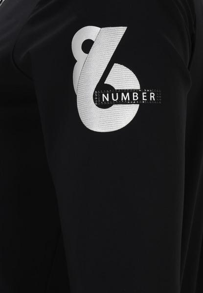 Die lässig geschnittene Jacke von Doris Streich ist aus einer hochelastischen Wirkware gefertigt. Der dekorative silberne Motivprint am linken Ärmel, die Reissverschlüsse, die zwei Zipper-Taschen, das edle 3D-Gummiband unten am Vorderteil und die