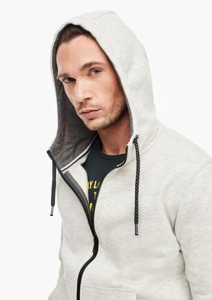 Kapuze mit Tunnelzug und kontrastierter Innenseite, durchgängiger Frontzip, geteilte Kängurutasche, Ärmel und Saum mit elastischen Rippbündchen, Regular Fit; Rückenlänge bei Größe M ca. 70 cm, Sweat-Qualität mit besonders weicher Innenseite