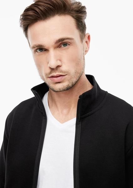 Sweatjacke im Scuba-Style, gerippter Stehkragen, verdeckter Reißverschluss, zwei Eingrifftaschen, elastische Rippbüdchen, Regular Fit; Rückenlänge bei Größe M ca. 70 cm, glatte, elastische Sweatware aus Viskosemix
