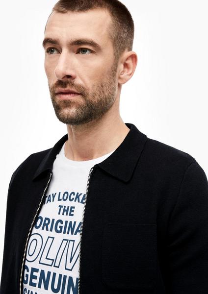 glatter Feinstrick, Kragen und Bündchen aus Rippstrick, eine Brusttasche, glänzender Frontzipper, Regular Fit; Rückenlänge bei Größe M ca. 68 cm, elastische Baumwoll-Qualität