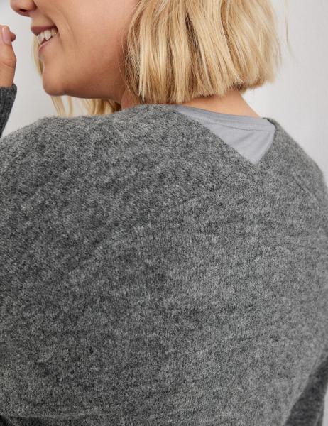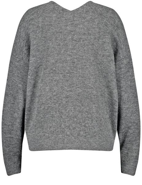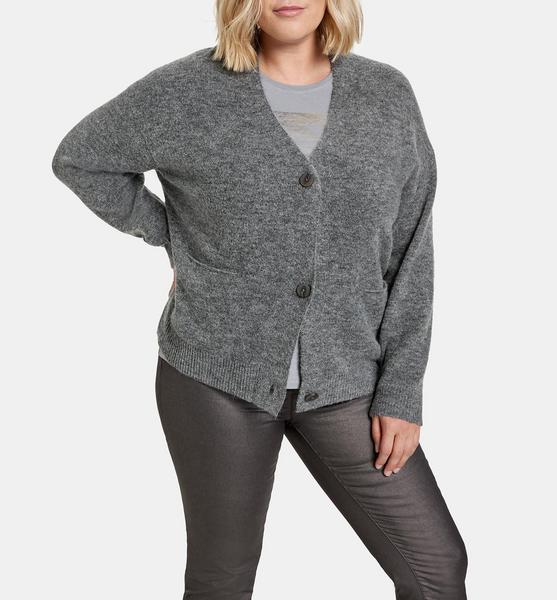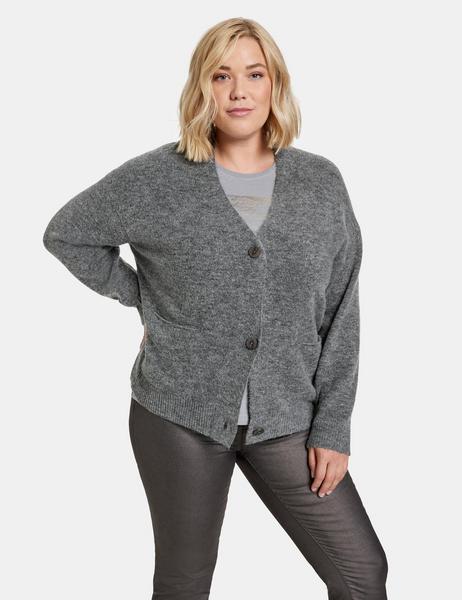 Innenseite mit Wording Print. Strick-Mix mit recyceltem Polyester. Ein Basic mit Trend-Feeling und Wohlfühl-Charakter: Die Strickjacke mit geradem Cut und 3-Knopf-Verschluss. Nachhaltiger Strick-Mix mit Wollanteil punktet mit weichem, wärmendem Tragegefühl.