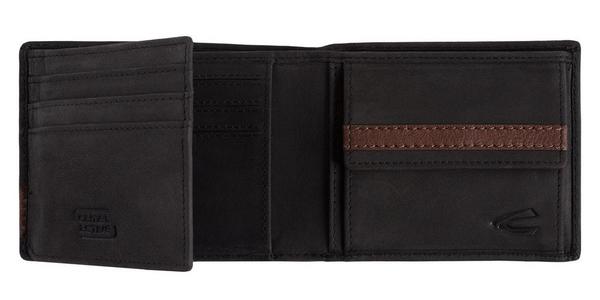 Kleine Börse im Querformat aus hochwertigem, griffigem Rindleder. Ein brauner Leder-Querstreifen verleiht dem Schlüsselteui eine harmonische Optik. Der eingebaute RFID Schutz verhindert das ungewollte Auslesen von Kreditkartendaten durch Dritte und schützt so vor Identitäts-Diebstahl. Querformat Börse klein, 6 Kreditkartenfächer, 3 Steckfächer, 1 Netzfach, 1 Scheinfach, 1 Münzfach
