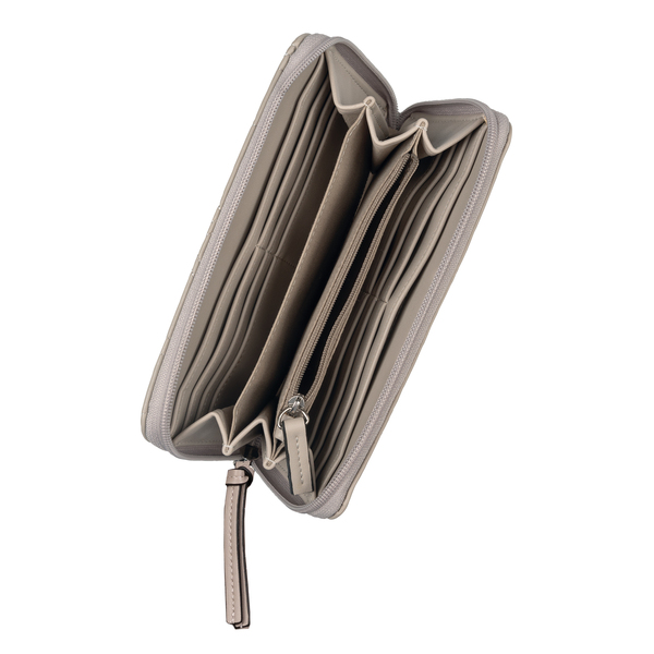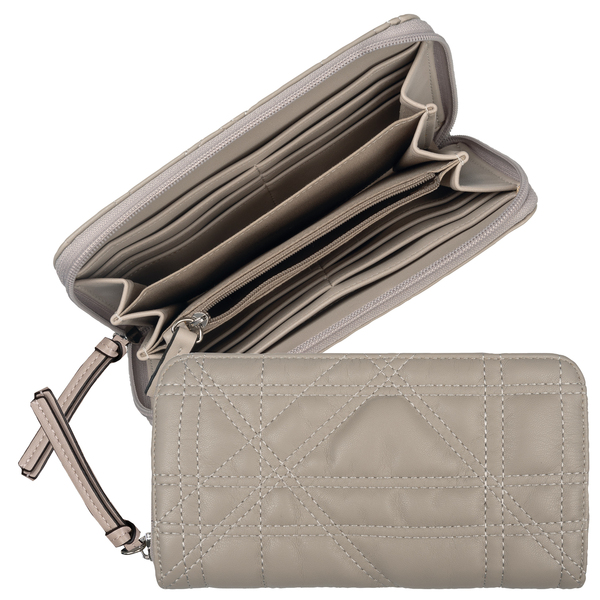 Tom Tailor JUANA bringt eine geometrisch gesteppte Wattierung in die Kollektion. Das entstehende Muster wirkt klassisch und kühl und ist in ebenso frischen Farben erhältlich. Aus weichem Lederimitat gefertigt, mit silberfarbenen Beschlägen. Große Geldbörse mit Reißverschlusshauptfach. Innen 1 Reißverschlussmünzfach, 12 Kartensteckfächer, 3 Steckfächer sowie 2 Scheinfächer.