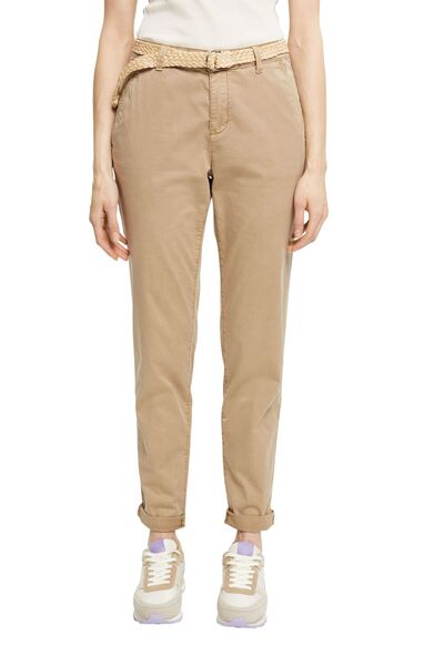 * Elastischer Bio-Baumwollmix * Bund mit Gürtelschlaufen, Knopf und Zipper * Zwei seitliche Eingriffstaschen und zwei Gesäßtaschen mit Knopf * Abnehmbarer Gürtel mit D-Schnalle * Feste Umschlagbündchen * Verkürzte Passform