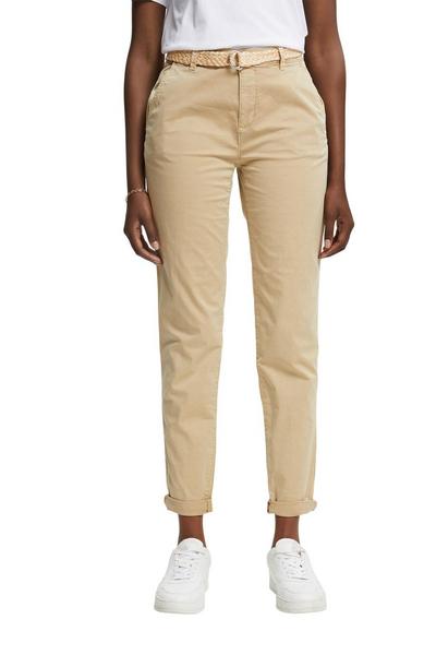 * Elastischer Bio-Baumwollmix * Bund mit Gürtelschlaufen, Knopf und Zipper * Zwei seitliche Eingriffstaschen und zwei Gesäßtaschen mit Knopf * Abnehmbarer Gürtel mit D-Schnalle * Feste Umschlagbündchen * Verkürzte Passform