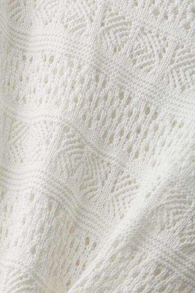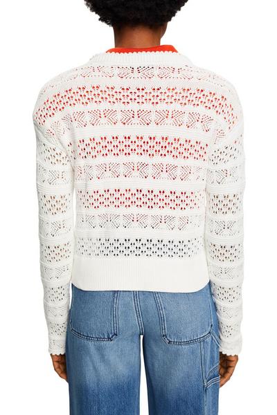 * Garn aus nachhaltiger Baumwolle * Runder, gerippter Ausschnitt mit Rüschenbesatz * Markantes Strukturdesign * Leichte Cropped-Form * Überschnittene Ärmel