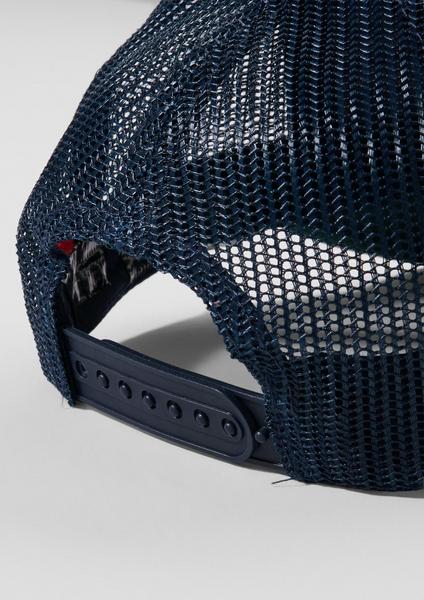 Cappy mit luftigem Mesh-Einsatz, cooles Stitching auf der Front, gebogener, runder Schirm, Kunststoffriegel zur Weitenregulierung hinten, angenehm leichte Qualität