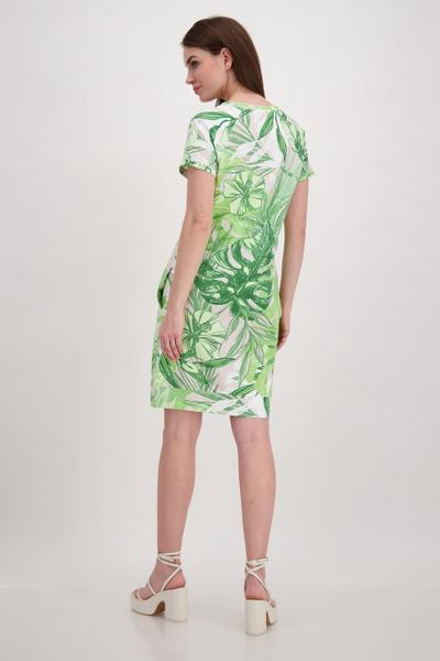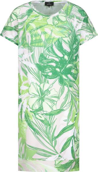 Das Blumenkleid von monari begeistert auf ganzer Linie. Die Regular Fit Linie mit Rundhalsausschnitt und Raglanärmel sorgt für eine gute Passform. Der Halbarm endet mit einer Lurex Overlock-Naht am Ärmelsaum. Geschmückt wird das Blumenmuster durch ein Patch mit Stickerei, Schrift und Strass auf dem linken Ärmel. Weicher Baumwollstoff mit Modal und Stretch ist pflegeleicht und passt sich super gut an.