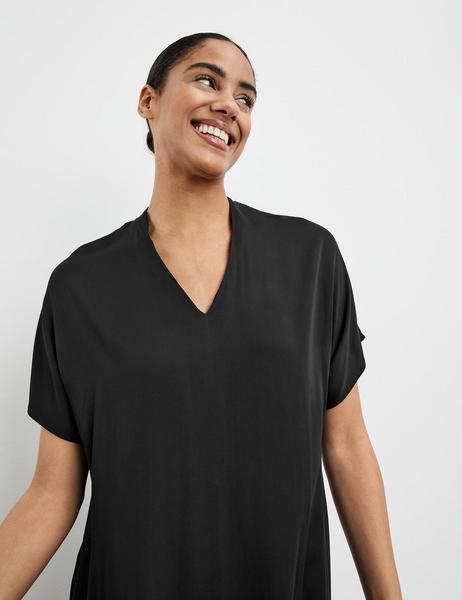 Seitliche Saumschlitze. Don't dream it, wear it! Mit dem Kleid aus fließender Viskose entsteht im Nu ein femininer Look, der dich zu jeder Gelegenheit toll aussehen lässt. Das schlichte Design mit V-Ausschnitt und kurzem Arm umspielt locker deine Silhouette. Hol dir dein neues Lieblingskleid!