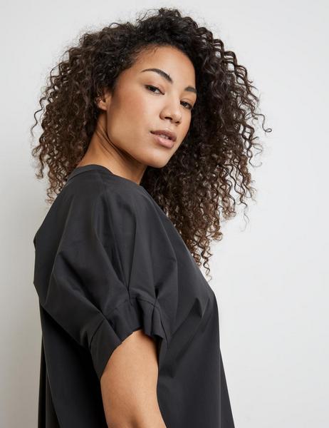Gelegte Falten am Arm. Wohlfühlen und dabei fantastisch aussehen! Das kurze Tunikakleid setzt auf klare Linien und smarte Akzente. Faltendetails verleihen den Ärmeln subtile Raffinesse, während dir der fein schimmernde Baumwoll-Mix mit Stretchkomfort ein entspanntes Tragegefühl schenkt. Der relaxte Schnitt mit seitlichen Nahttaschen macht dieses Kleid zu einer stilvollen Wahl für den modernen Lifestyle.