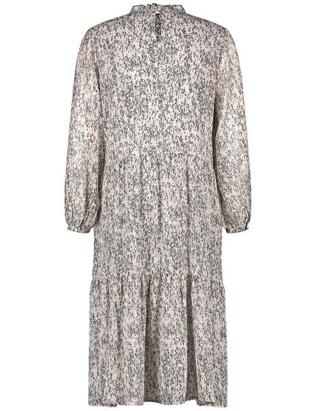 Rüschenkragen. Stufenverarbeitung. Mit diesem Midikleid holst du dir den Zauber der Romantik in deinen Kleiderschrank! Der legere Stufenschnitt mit verspieltem Rüschenkragen macht das Kleid zu deinem perfekten Begleiter für zahlreiche Gelegenheiten. Die zarte Crêpe-Qualität ist im Body blickdicht gefüttert, während die Ärmel einen Hauch von Transparenz bieten. Romantik im modernen Gewand - perfekt für deinen einzigartigen Style!