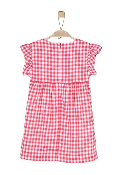 rundum mit Karomuster, Rundhalsausschnitt; hinten mit nahtfeinem Reißverschluss, florale Stickerei mit Paillettenapplikation im Brustbereich, Rüschen am Ärmelansatz, Empire-Passform mit ausgestelltem Rockteil; Rückenlänge bei Größe 104 ca. 58 cm, reine Baumwolle in hochwertiger Verarbeitung