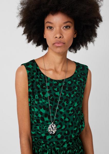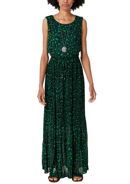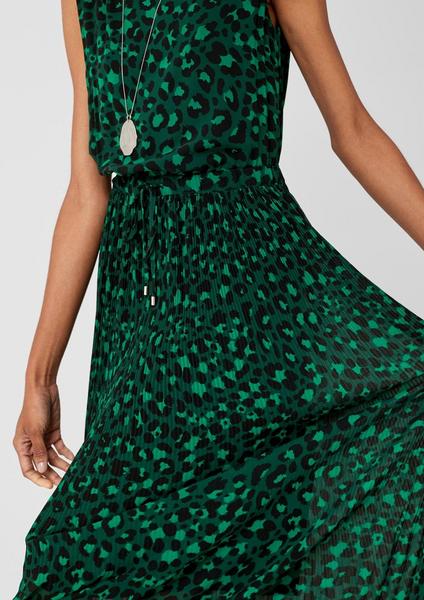 Chiffonkleid mit Printmuster allover, Blickfang: oben glatt, schmal plissierter mittlerer Bereich, unterer Bereich mit breiteren Plissees, Rundhalsausschnitt mit Knopf im Nacken, ohne Ärmel, Taille mit Gummizug und Durchzugband, lockere, taillierte Passform mit ausgestelltem Saum; Rückenlänge bei Größe 36 ca. 142 cm, zarter Chiffon; mit blickdichtem Jersey-Futter