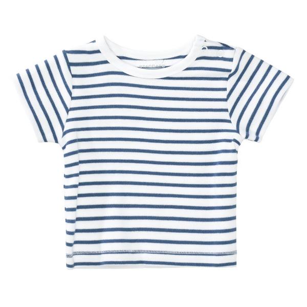 100% Bio-Baumwolle Set aus Strampler und T-Shirt Shirt im Streifen-Design unifarbener Strampler mit kleiner Brusttasche in Wal-Form schließt mit Holzknöpfen, sowie Druckknöpfen im Schritt und an der Schulter