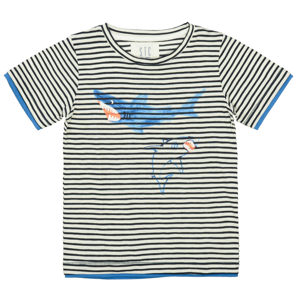 Hai-Fans aufgepasst! Dieses coole T-Shirt von STACCATO begeistert mit coolen Hai-Prints und angesagtem Streifen-Design.