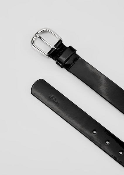 Ledergürtel mit glänzender Beschichtung, ovale Schließe in silberglänzender Optik, Breite ca. 3 cm, aus echtem Leder