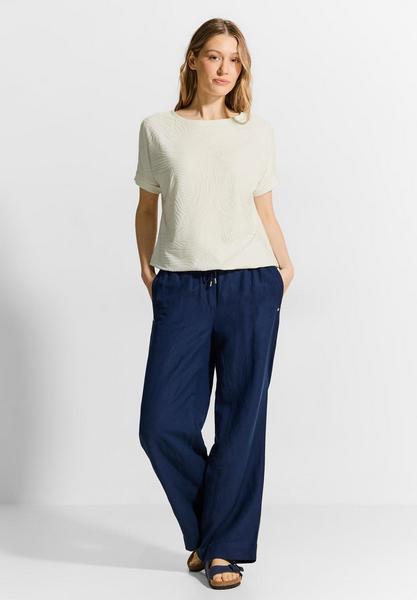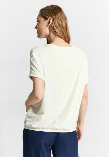 Das Jacquard T-Shirt von CECIL für Damen ist ein stylisches Kurzarmshirt mit einem eleganten U-Boot Ausschnitt und einem Gummibund für eine bequeme Passform. Es verfügt über eine einzigartige 3D-Wellenstruktur, die dem Shirt eine besondere Note verleiht. Dank des Stretchanteils bietet es optimalen Tragekomfort und eine ideale Passform. Jacquard Kurzarmshirt U-Boot Ausschnitt Gummibund 3D-Wellen Struktur Bequem durch Stretchanteil Material: 61% Polyester, 33% Viskose, 6% Elasthan