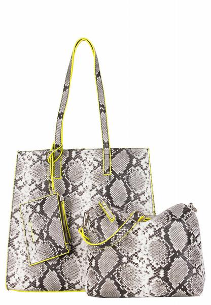Zwei Taschen in einer. Das ist "Bag in Bag"! Das Modell umfasst einen großen Shopper sowie eine dazugehörige Innentasche, die mit dem Umhängeriemen auch crossbody getragen werden kann. Super praktisch, wenn man mal etwas mehr Platz braucht. Das Modell besteht aus Kunststoff und lässt sich mit einem Druckknopf verschließen. Zweifarbiges Design und glatte Optik sind fein gearbeitet und verleihen dem Shopper einen edlen Look. EMILY & NOAH - für selbstbewusste Frauen, die wissen, was sie wollen. Mit dem Accessoire von EMILY & NOAH wird ein individueller Stil geschaffen. Kombiniert mit einer schicken Hose, einem Kleid oder einer modischen Tunika zeigen die Produkte des Labels echte Persönlichkeit. Das Modell Lina ist von der Haptik eher fest, sodass Sachen, die nicht geknickt werden dürfen, sicher transportiert werden. Über der Schulter ist dieses Modell mit dem komfortablen Umhängeriemen und den zwei Tragegriffen zu tragen.