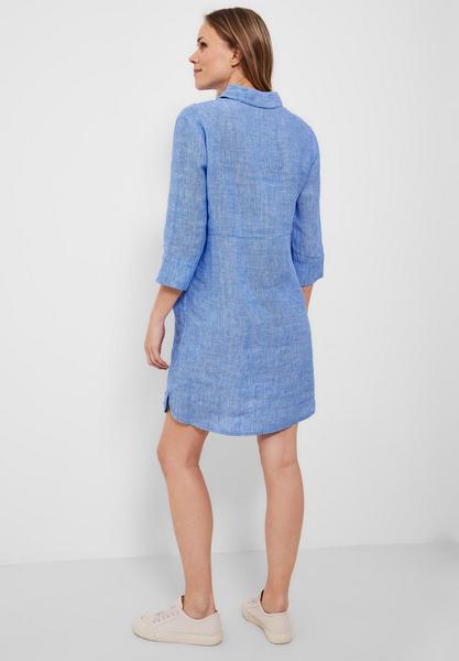 Feel free! Lockeres Kleid im luftigen Leinen von CECIL. Ein Allrounder mit Hemdblusenkragen, kurzer Knopfleiste und im bequemen Fit. Dezenter Hingucker ist die Chambray Optik mit ihrem leichten Streifendessin.