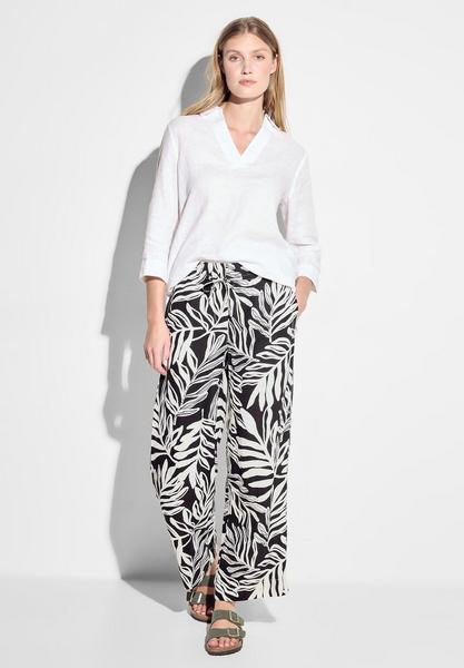 Die leichte Sommerhose im Style Neele von CECIL für Damen bietet einen lockeren, dennoch eleganten Loose Fit und eine High Waist für ultimativen Komfort und eine schmeichelhafte Passform. Mit einem Gummibund und Tunnelzug ist sie individuell anpassbar, während seitliche Eingrifftaschen Funktionalität bieten. Das markante Print-Muster verleiht der Hose im Leinen Mix eine moderne und sommerliche Note. Leinenmix Hose Lässiger Loose Fit High Waist und Wide Legs Gummibund und Tunnelzug Seitliche Eingrifftaschen Print Material: 55% Leinen, 45% Viskose